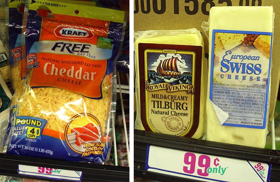 So always peruse the deli case for cheese deals, but beware of "vegetable oil" based cheese -- even The 99 Chef Chef has standards!