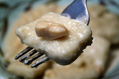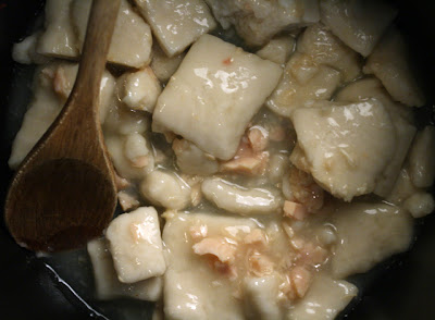 The dumplings themselves are firm but not too much so, and the taste is light and doughy, flavored by the chicken gravy.