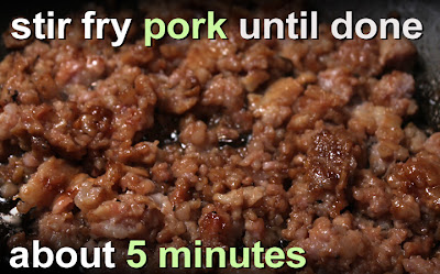 • 10 ounces to 1 pound of ground pork - I used a 10 ounce package. Substitute ground chicken or turkey for a lighter stir-fry.
