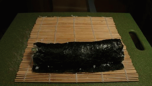 Making a sushi roll takes a little more practice. Sometimes the sushi roll is thin, or too fat. But it's easy enough to open the roll and add or subtract filling before you seal it. Here's my GIF of rolling with a bamboo sushi mat.
