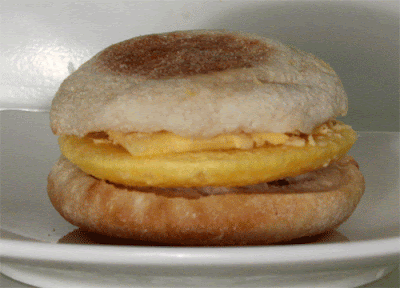Since this sandwich is only cheese, egg and bread, it's a lighter meal, compared to an Egg McMuffin with Canadian bacon or sausage. And it quickly microwaves, and travels well on the road to work, if you are in a rush in the morning.