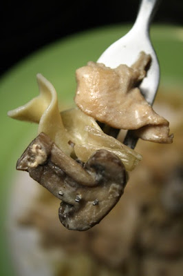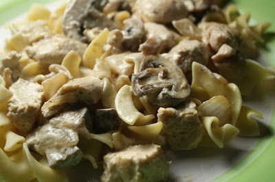 My Chicken Stroganoff is one lush entree. Some recipes leave out Dijon mustard, but you should use it if you have it - it adds a tangy level of taste to the cream sauce. I also used a small 99.99 cent bottle of white wine for some added sweetness -- you could substitute vegetable or chicken broth.
