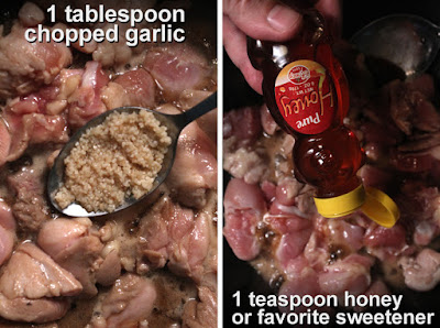 - 1 tablespoon corn starch or flour - optional. This will thicken liquid, if you like it that way. Mix into raw chicken.