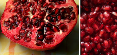 Whole pomegranates appeal to Middle Eastern tastes buds. I like the sour/sweet pulp. Inside the cardboard hard shells there are tiny fruit lozenges with seeds, and you eat the bright red flesh with seeds - quite tasty. I made an cute video with my neighbor Bob's 4 year old daughter, Lola, where we try to get her to eat some. You can see it here.