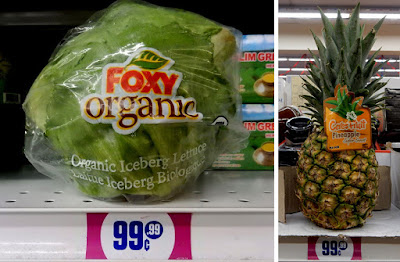 As for fruit, how about whole pineapples for 99.99 cents! They even carry coconuts - good luck cracking them, though. I usually settle for Coconut Chips.