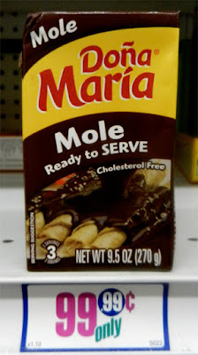 While this Mole may not taste like homemade to transplanted Oaxacans, you can't beat the price. Mole is a complex blend of spices and chilies, really too complex for the average cook to make. I found small boxes of it, and it tastes fine, especially paired with a nice fillet of chicken.