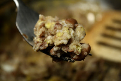 Mash the beans with a fork (or potato masher) as they are heating through. It's up to you how mushy you want the Refried Beans - I like mine slightly chunky. This is how you make typical Refried Beans.
