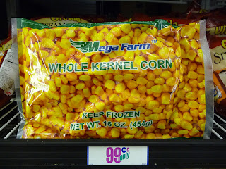 My local Latin market always has tomatoes for under a dollar per pound, and a bunch of cilantro is frequently on sale for a quarter. I usually get my frozen corn at this 99c only Store. Frozen bags of corn cost more than a can, but you get about 3 cans worth, so it all evens out.