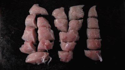 In a large frying pan or a wok, add 2 tablespoons of oil to a medium/hot pan. Add chicken and cook until done, about 3-5 minutes if the chicken is cubed. For whole chicken pieces it will take longer, about 7-10 minutes. Chicken is done when there is no pink color in thickest part of chicken.