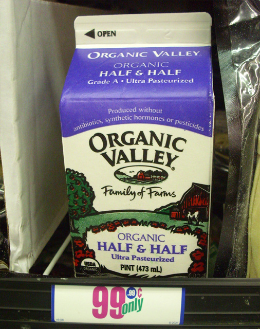 • 2 cups (a pint carton) of half & half, or cream.