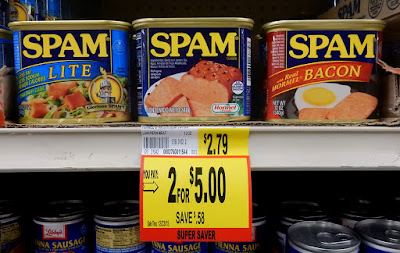 12 ounce cans of Spam come on sale for less than $3 per can and you can get 6-8 slices or 6-8 Spam Musubi per can, now that's a good deal. I even find small 7 ounce cans of a luncheon loaf (which is similar to Spam) and single Spam packets at my local 99c only Store. And rice is cheap anywhere you buy it.