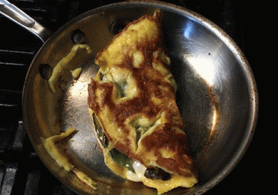 I make this omelet old school, diner-style. The egg is whipped with a little milk and cooked all the way through -- with a nice browned exterior. As a contrast, I made a soggy, French-style Cheese Omelette video a couple of months ago (check it out here.) It's good, but sometimes I like my food well done.
