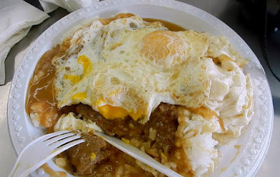 Spam Musubi is just Japanese-style sticky rice with a slab of fried marinated spam on top, wrapped with a band of dried seaweed; and about the size of a Twinkie. I know, not appetizing sounding. But don't knock it until you've tried it. This is what the locals get when they are on the run looking for a quick bite. Spam Musubi is carried in grocery stores with a heated deli case, liquor stores, and 7 Elevens. I know Japanese musubi has many more topping than just Spam (I've visited Little Tokyo many times, here in Los Angeles.) Well, about 4 short blocks away from our Waikiki hotel was one of the most well known eateries serving musubi on the island, called Musubi Cafe Iyasume.