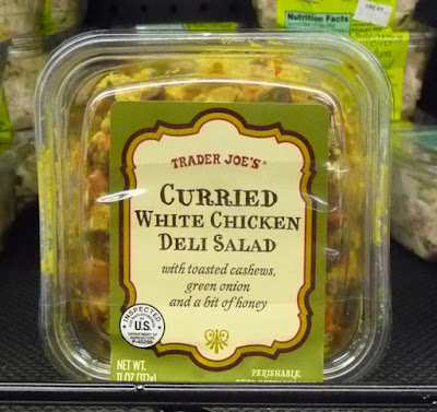 Often I've hungrily peered into the refrigerator to see what she's eating. Sometimes I've raided her purchase of a prepared salad from Trader Joe's, our local cheaper version of Whole Foods Market. One of her favorites is a Trader Joe's chilled salad called: Curried White Chicken Deli Salad. I liked it so much that I came up with my own cheapie version (using dark meat instead of more expensive white meat,) just a click away here.