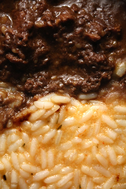 This recipe is a 2fer. You can scoop it onto a plate of rice or just stuff it into a taco or burrito. Plus it's so cheap and easy to make, with very few ingredients to deal with, just a couple of canned items, onion, garlic and chicken. It's crock pot cuisine that freezes well -- I pack it into a container for office lunches. When you try it, I think it will be a favorite for you too.