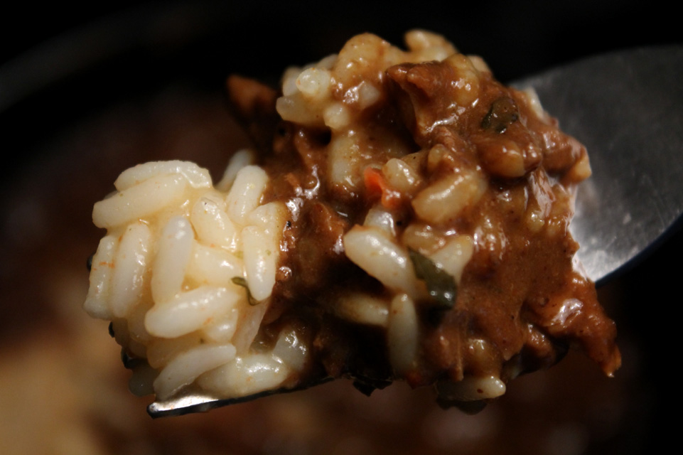 While not as refined as what a Oaxacan restaurant would serve, this mole a rich version. It tastes a little bit bitter and a little bit sweet; it's mild, but seasoned with chiles, spices, and nuts.