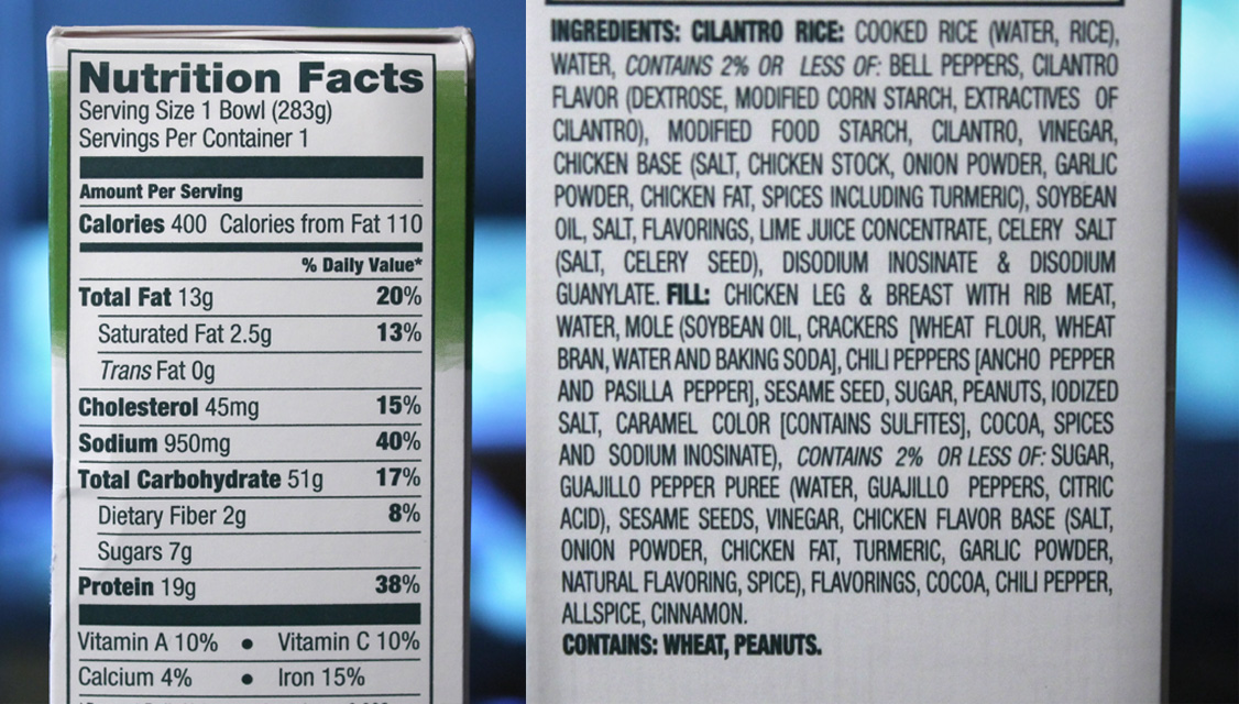 You get a lot of mole sauce to sop up the Cilantro Rice. The rice is not mushy like most frozen fare and while there are specks of the green herb cilantro, it is subtle - I would have made the cilantro flavor more pronounced. It's a minor quibble though. There is also a small amount of tomato sauce flavor. Overall, I liked the way the rice was prepared and flavored.